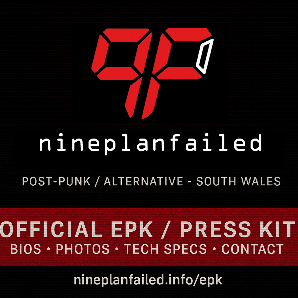 Rooted in a DIY ethos and the South Wales underground, the band have steadily built their presence through live shows, self-released material and visual projects, developing a distinctive aesthetic that blends post-punk, alternative rock and new-wave sensibilities without being tied to any one revival or trend. Whether on record or on stage, nineplanfailed are less interested in nostalgia than in creating a sound that feels urgent, human and alive right now.